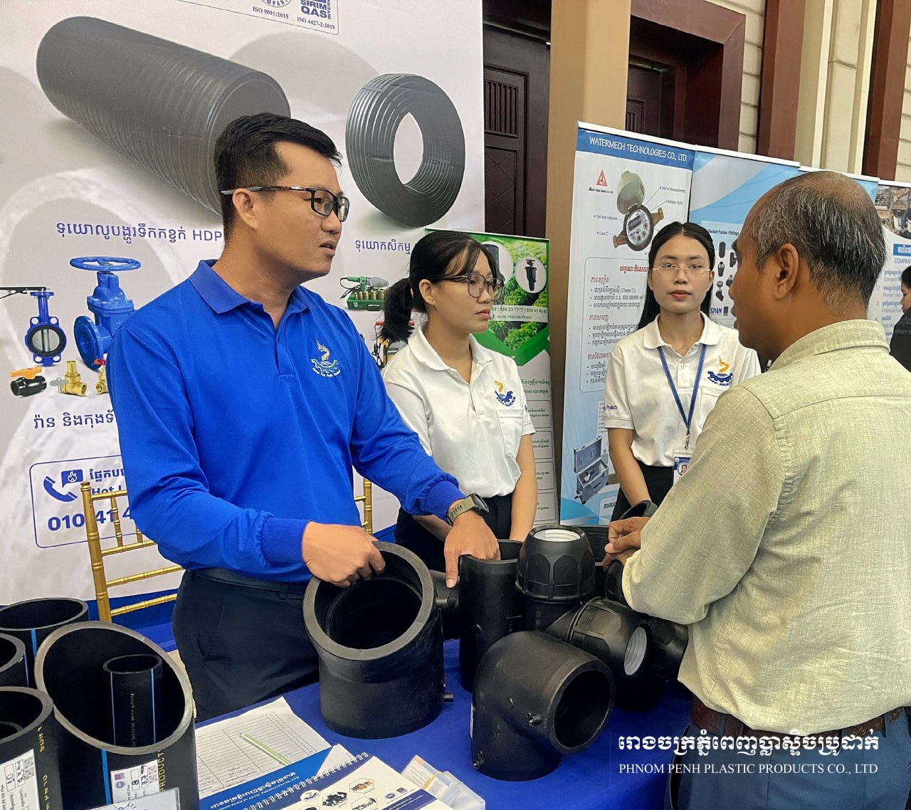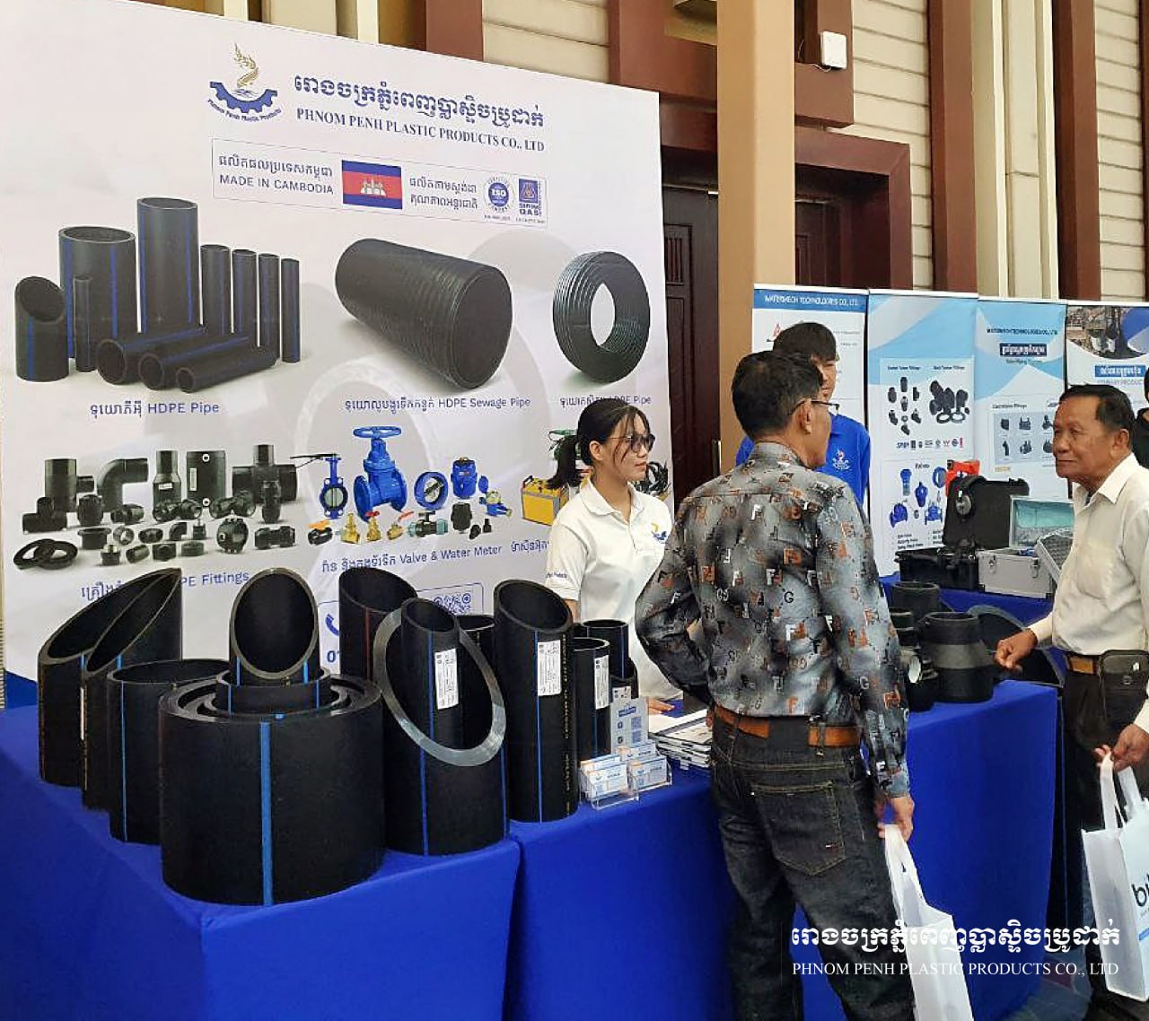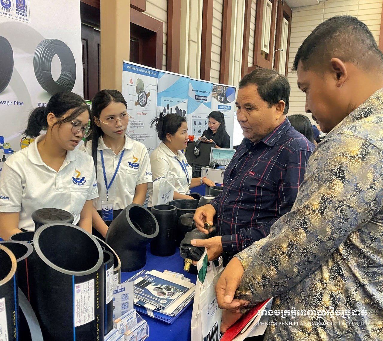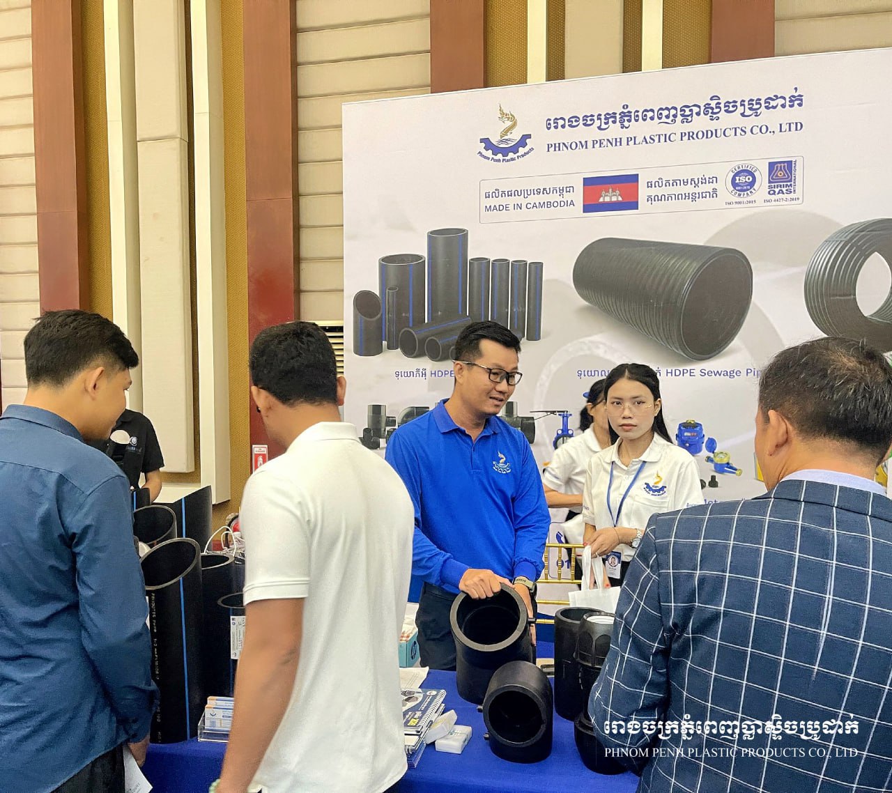 🔹ក្រុមហ៊ុនភ្នំពេញប្លាស្ទិចប្រូដាក់ មានកិត្តិយសបានចូលរួមក្នុង ការតាំងពិព័រណ៍មហាសន្និបាតសមាគមលើកទី14 ដែលរៀបចំដោយ សមាគមអ្នកផ្គត់ផ្គង់ទឹកស្អាតកម្ពុជា (ស.ទ.ក)។ 🔹ក្នុងឱកាសនេះ ក្រុមហ៊ុនយើងខ្ញុំមានការដាក់តាំងបង្ហាញ ទុយោភ្នំពេញប្លាស្ទិចប្រូដាក់ និងសម្ភារៈគ្រឿងតំណទុយោភីអុី ដែលផលិតតាមស្តង់ដាអន្តរជាតិ ISO 9001:2015 និង ISO 4427-2:2019 សម្រាប់ការប្រើប្រាស់ក្នុងប្រព័ន្ធទឹកស្អាត។ 🔹ជាមួយគ្នានេះផងដែរ ក្រុមការងារបច្ចេកទេសរបស់យើងក៏បានផ្តល់ការប្រឹក្សាយោបល់ និងចែករំលែកបទពិសោធន៍បច្ចេកទេស ជាមួយអតិថិជន និងដៃគូអាជីវកម្ម ដើម្បីជួយឱ្យជ្រើសរើសផលិតផលដែលសមស្រប និងមានប្រសិទ្ធភាពសម្រាប់គម្រោងប្រព័ន្ធទឹកស្អាត។ 🙏 សូមអរគុណចំពោះភ្ញៀវកិត្តិយស និងអតិថិជនទាំងអស់ ដែលបានអញ្ជើញមកទស្សនា និងពិភាក្សាជាមួយក្រុមការងាររបស់យើងខ្ញុំ។ ---------------------------------------- 🔹Phnom Penh Plastic Products Co., Ltd. is honored to participate in the 14th Annual General Assembly Exhibition, organized by the Cambodian Water Supply Association (CWA). 🔹On this occasion, our company showcased Phnom Penh Plastic Pipes and PE fittings, manufactured according to international standards ISO 9001:2015 and ISO 4427-2:2019, suitable for use in water supply systems. 🔹In addition, our technical team provided consultation and shared technical expertise with clients and business partners, helping them select the most suitable and efficient products for their water supply projects. 🙏 We sincerely thank all our esteemed visitors and clients for coming to visit and discuss with our team.