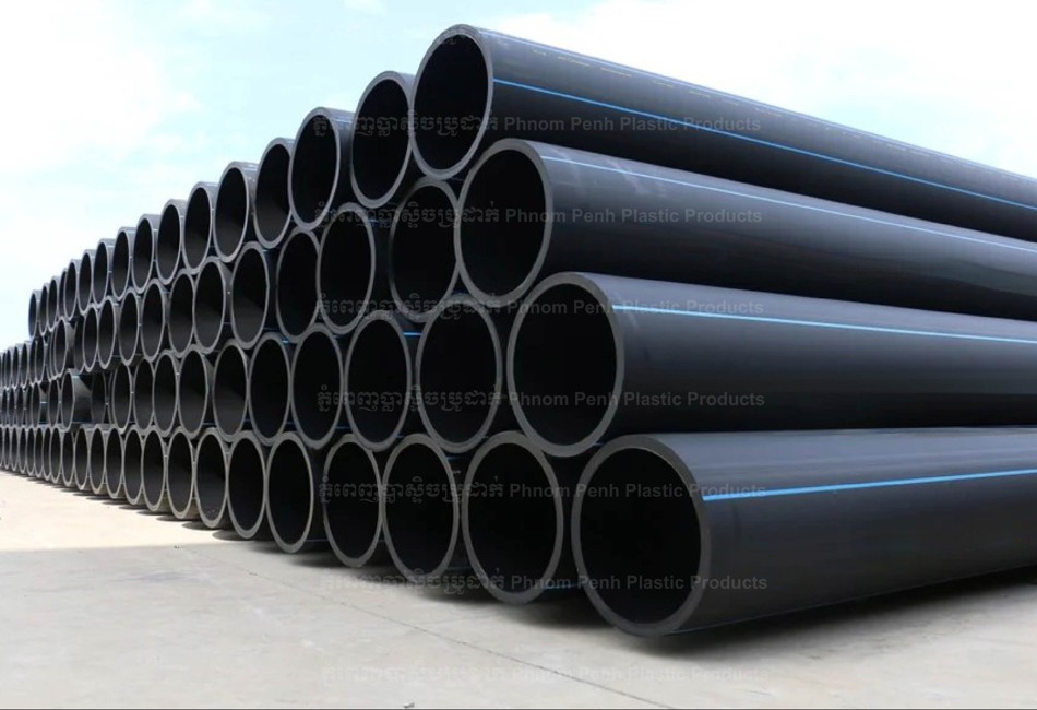 វិស័យទឹកស្អាត មានសម្គាល់ខ្សែឆ្នូតពណ៍ខៀវ Portable water pipeline with blue stripes