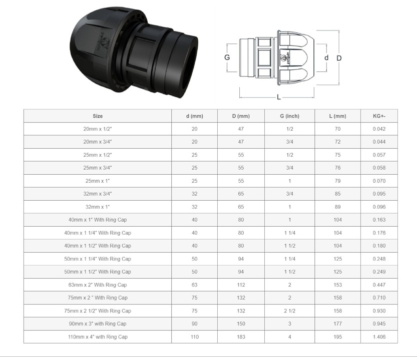 គ្រឿងតំណប្រភេទមួល HDPE Compression Fitting