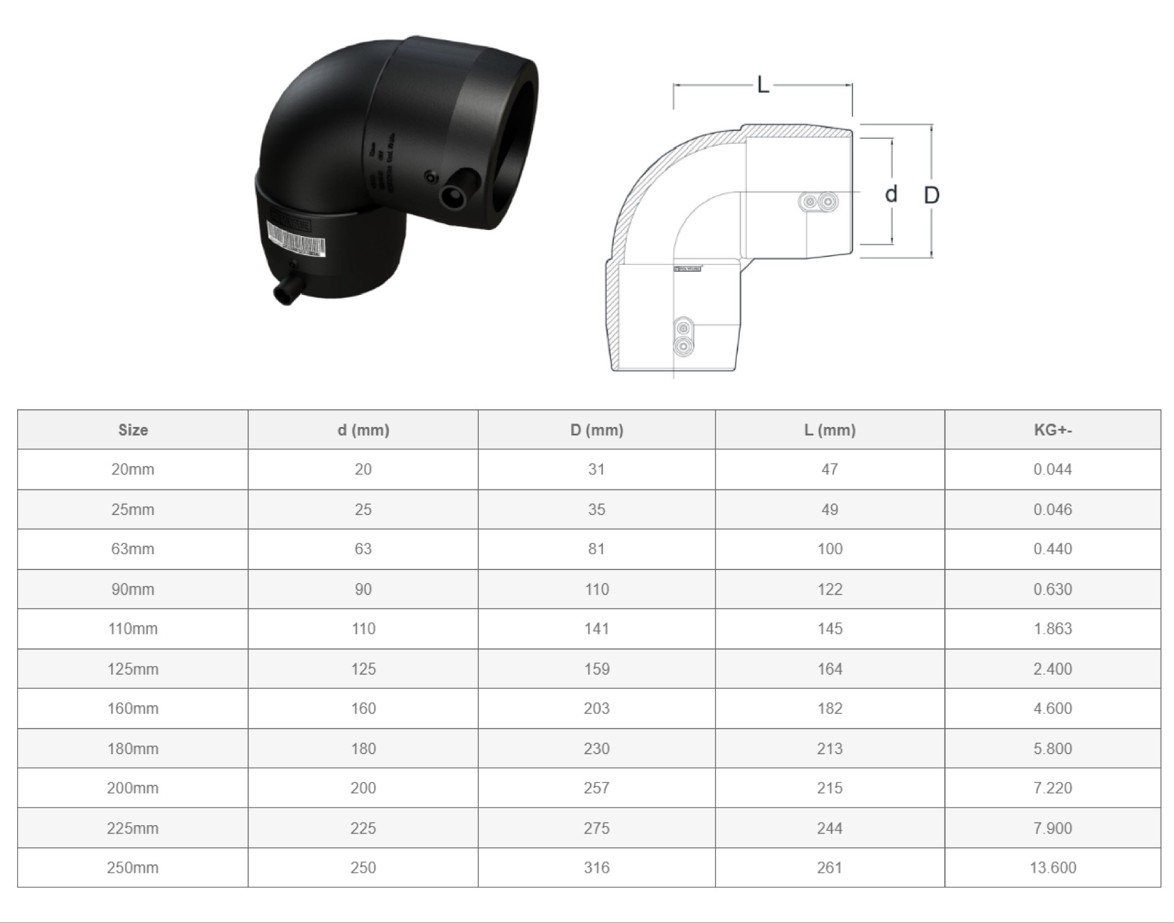 កែងអ៊ុត៩០ដឺក្រេ-Electrofusion Elbow 90degree